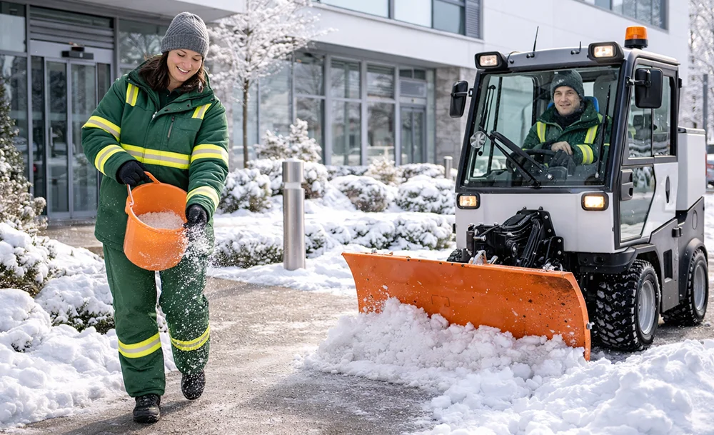 Durch den Einsatz geeigneter Räumtechnik können winterliche Außenflächen frühzeitig gesichert und laufend kontrolliert werden. So bleibt Ihre Immobilie auch im morgendlichen Berufsverkehr sowie im Tagesverlauf besser zugänglich, sicherer und funktional betreut.
